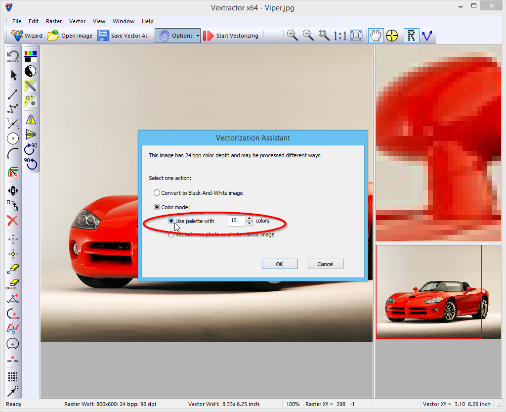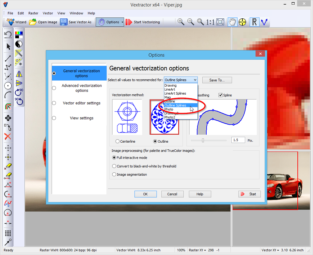 Start vectorizer program Load photo image